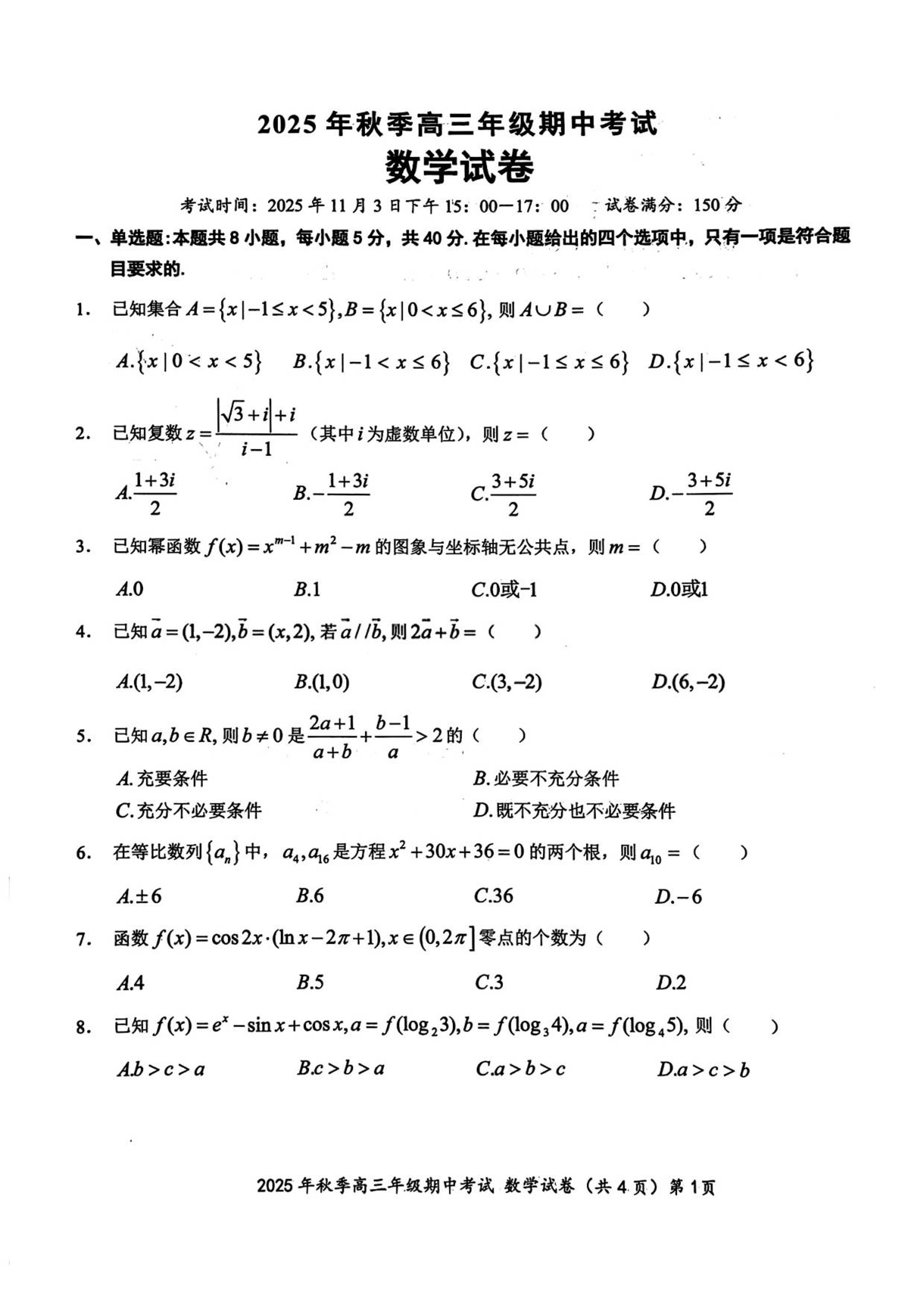高三数学--湖北省鄂东南教育联盟2026届高三上学期11月联考