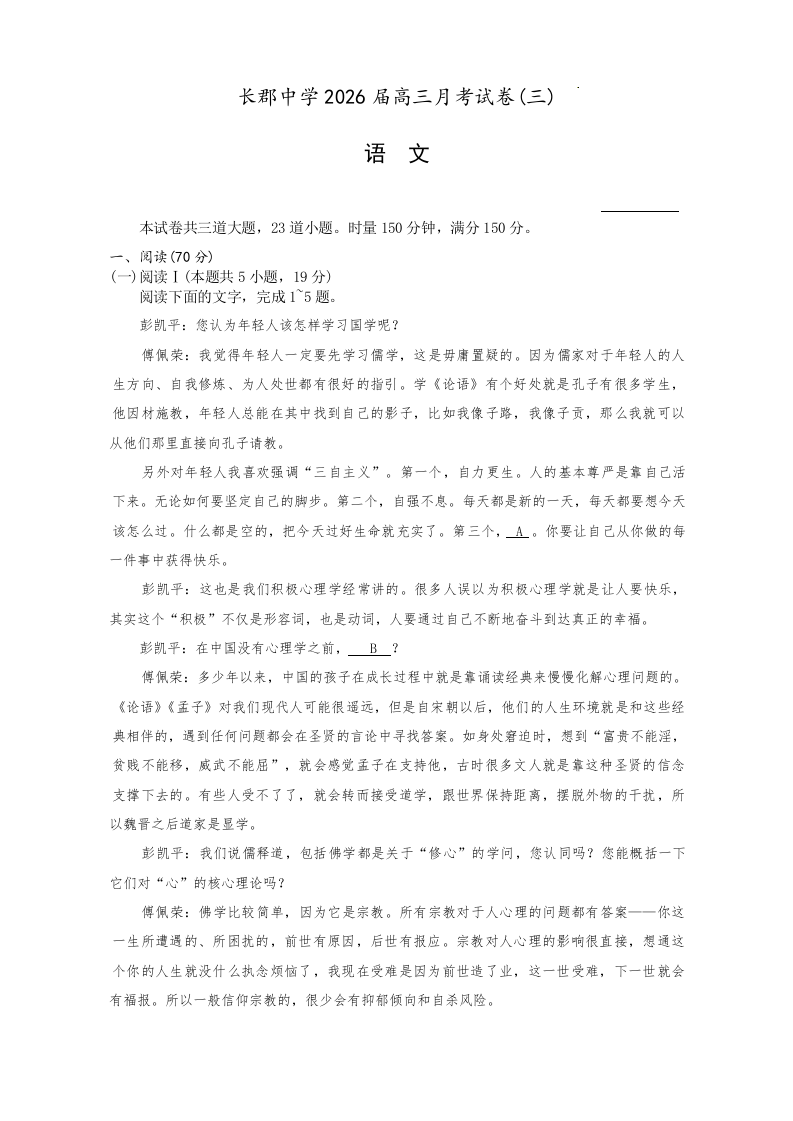 高三语文--湖南省长郡中学2026届高三上学期11月月考
