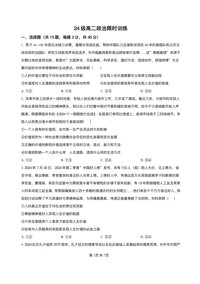 高二政治+答案--山东省烟台市牟平第一中学2025-2026学年高二上学期10月月考