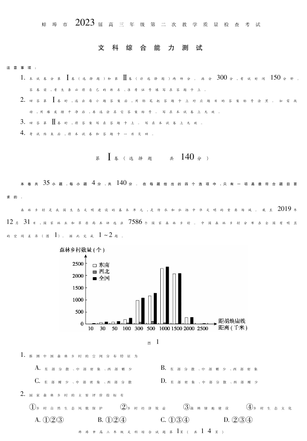 高三文综+答案--安徽省蚌埠市2023届高三第二次教学质量检查考试