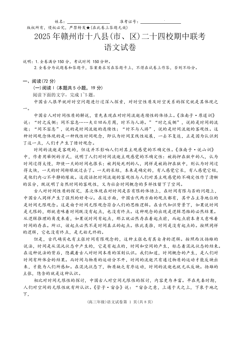 高三语文--江西省赣州市十八县(市、区)二十四校2026届高三上学期11月期中考