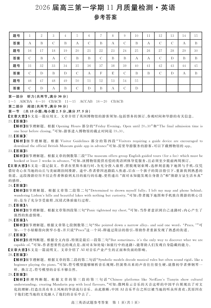 高三英语答案--安徽省华师联盟2026届高三第一学期11月质量检测