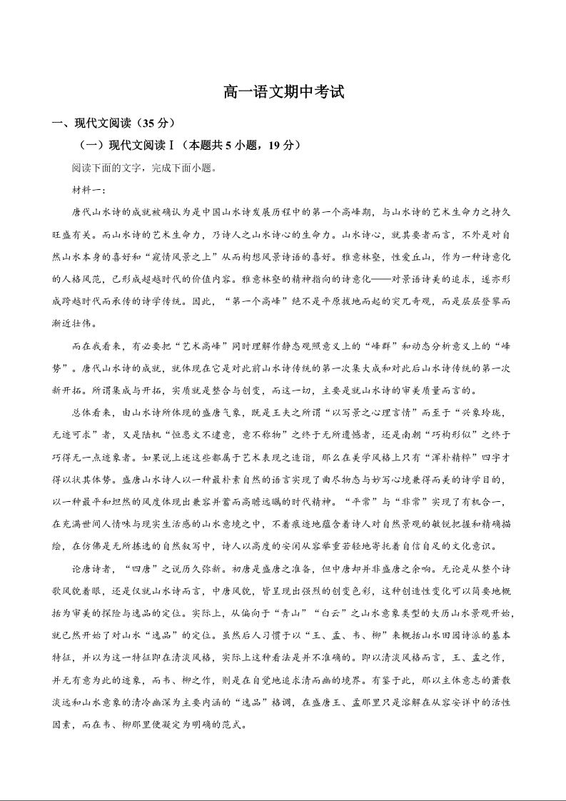 高一语文+答案--吉林省梅河口市第五中学2025-2026学年高一上学期11月期中考试