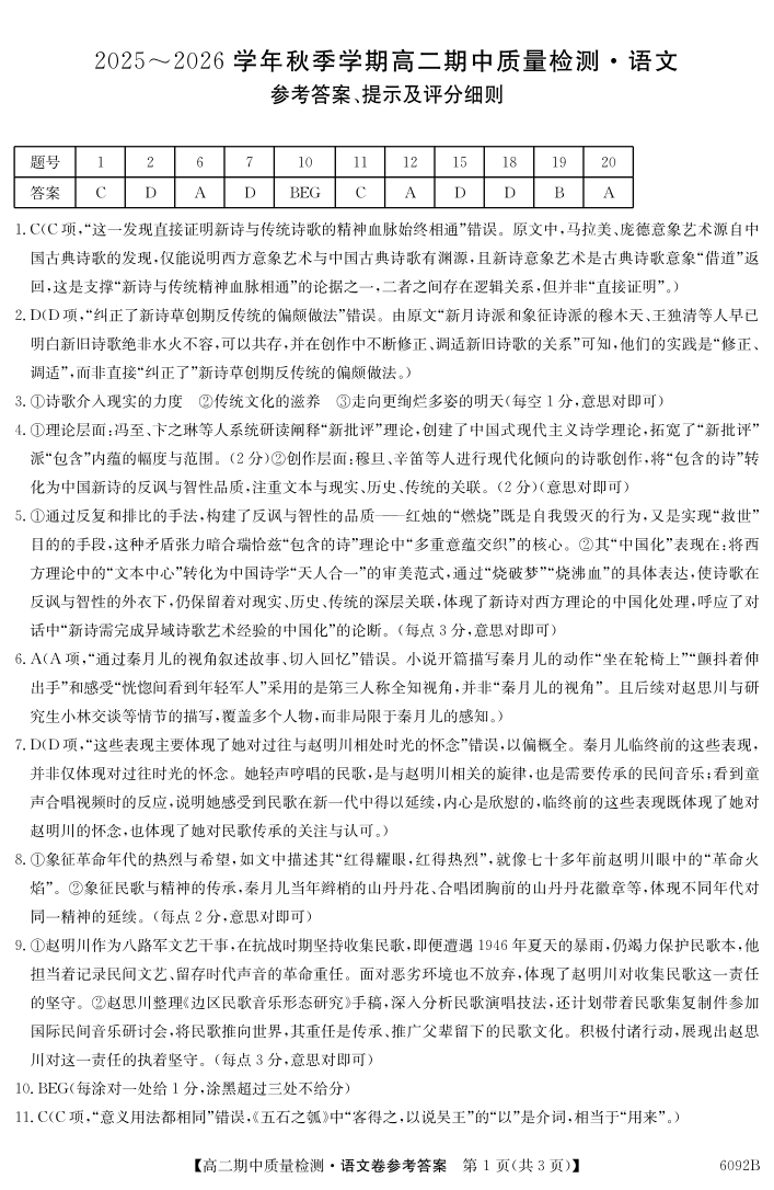 高二语文答案--安徽省华师联盟2025~2026学年秋季学期高二期中质量检测