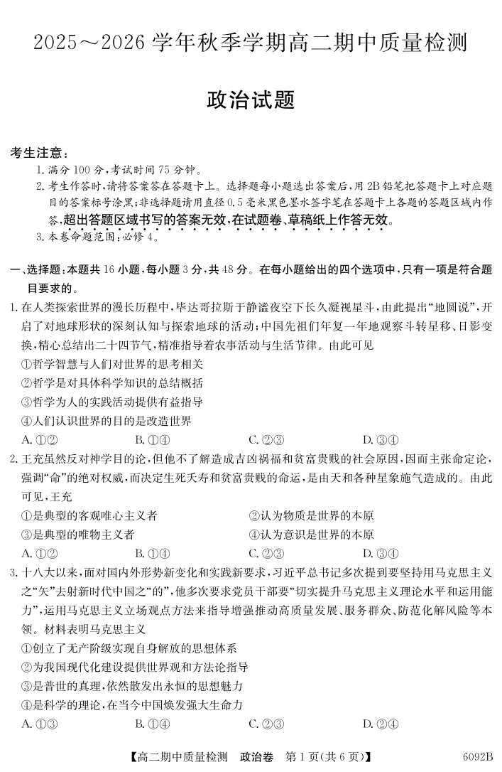 高二政治--安徽省华师联盟2025~2026学年秋季学期高二期中质量检测
