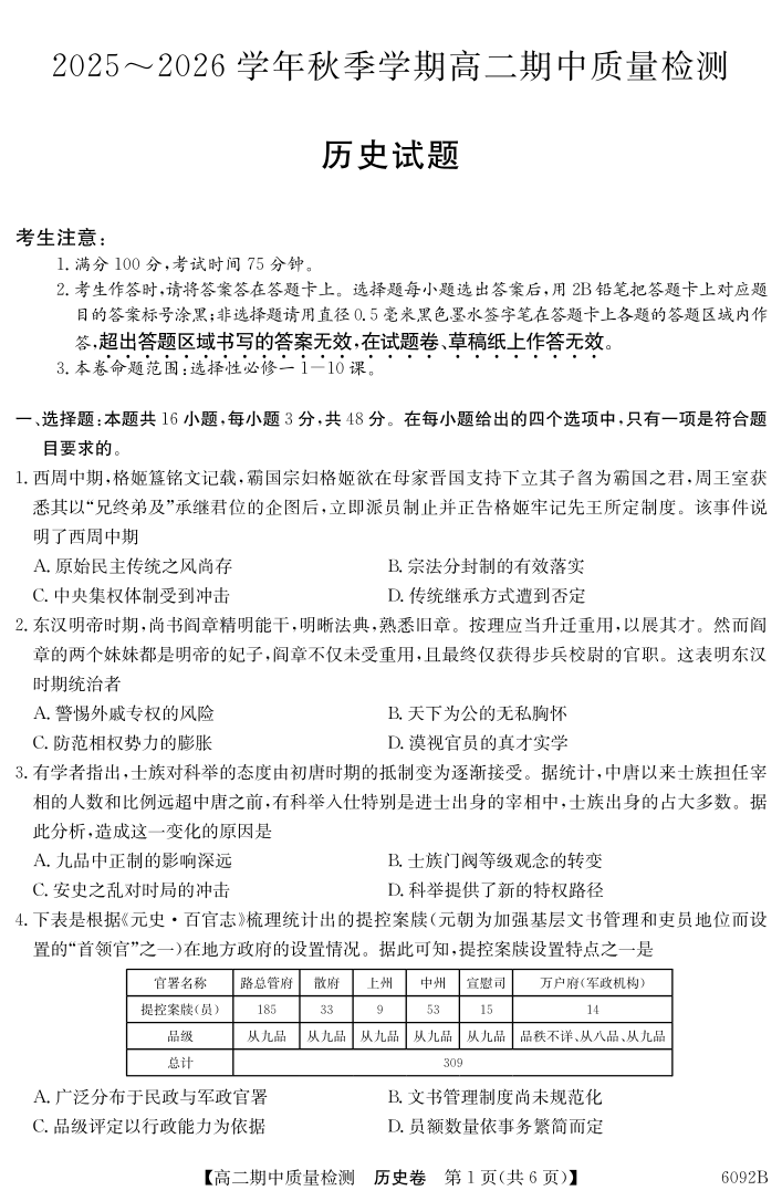 高二历史--安徽省华师联盟2025~2026学年秋季学期高二期中质量检测