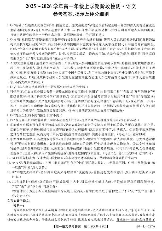 高一语文答案--安徽省江淮名校2025-2026学年高一上学期阶段联考