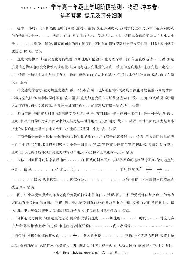 高一物理答案(冲本卷)--安徽省江淮名校2025-2026学年高一上学期阶段联考
