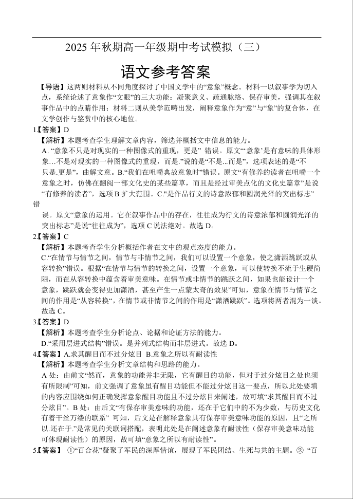 高一语文答案--河南省南阳市方城县第一高级中学2025-2026学年高一上学期11月期中