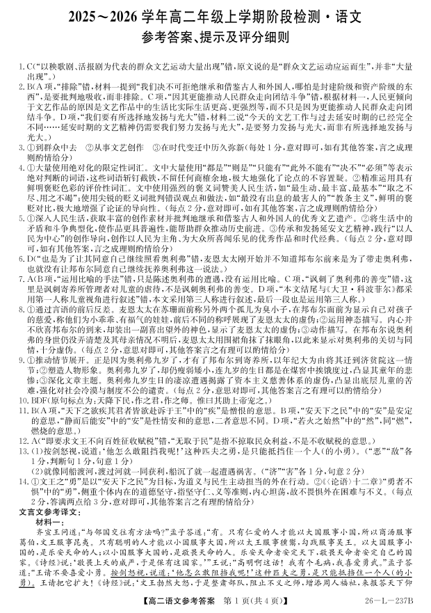 高二语文答案--安徽省江淮名校2025-2026学年高二上学期阶段联考