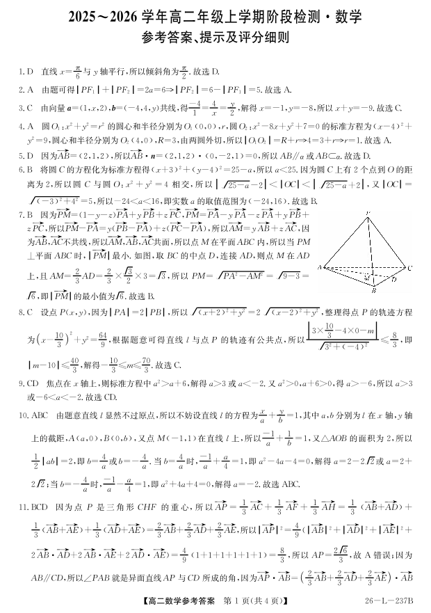 高二数学答案--安徽省江淮名校2025-2026学年高二上学期阶段联考