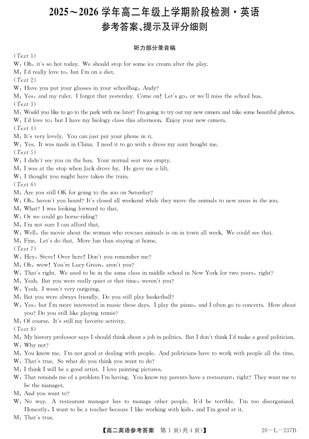 高二英语答案--安徽省江淮名校2025-2026学年高二上学期阶段联考