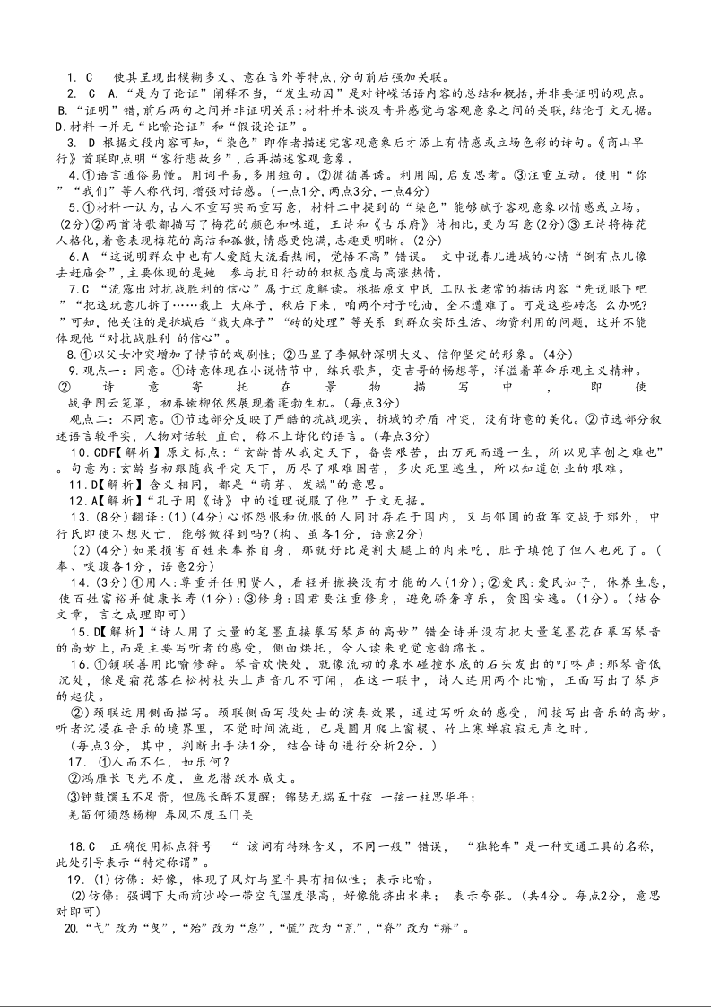 高二语文答案--重庆市万州二中2025-2026学年高二上学期期中考试