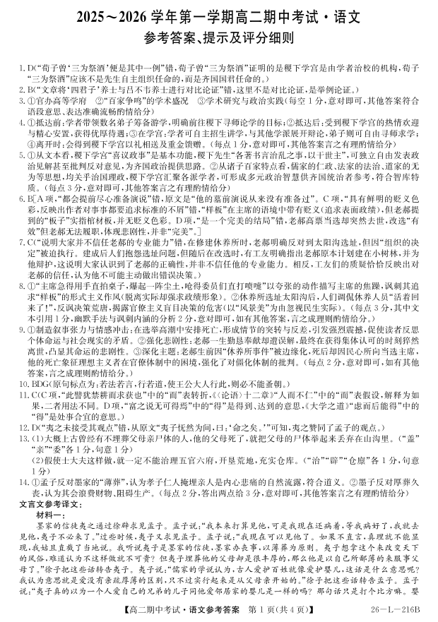 高二语文答案--安徽省县中联盟2025-2026学年第一学期高二期中考试(26-L-216B)