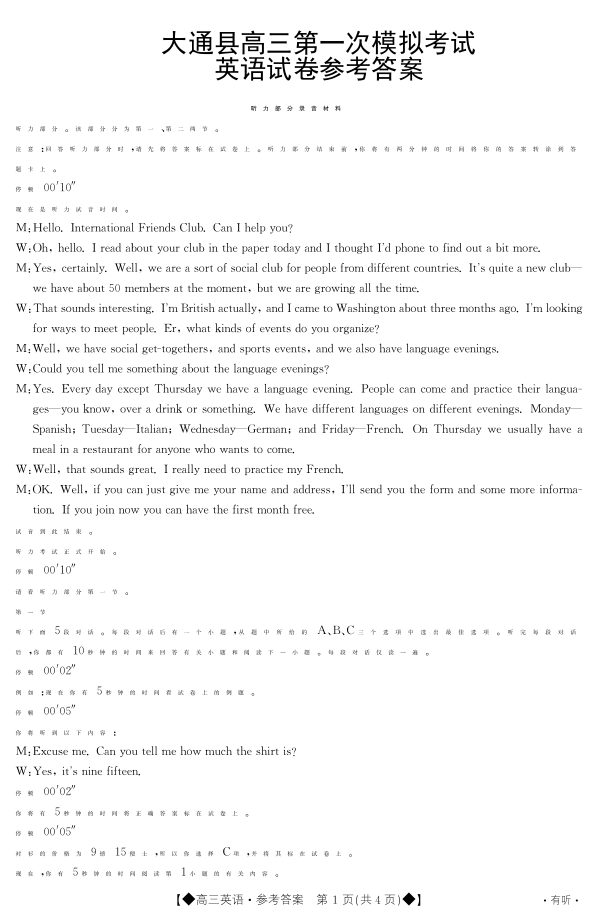 高三英语答案--青海省西宁市大通回族土族自治县2023届高三一模