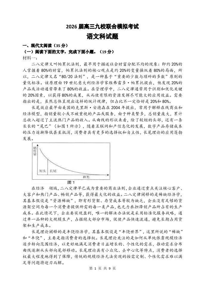 高三语文+答案--吉林省2026届高三九校11月联合模拟考
