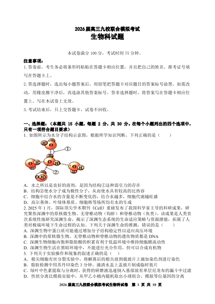 高三生物+答案--吉林省2026届高三九校11月联合模拟考