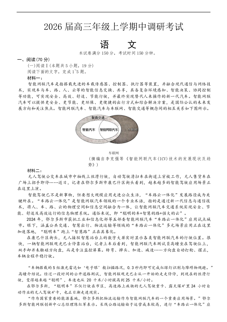 高三语文+答案--河北省9+1联盟2026届高三上学期12月期中联合调研测评