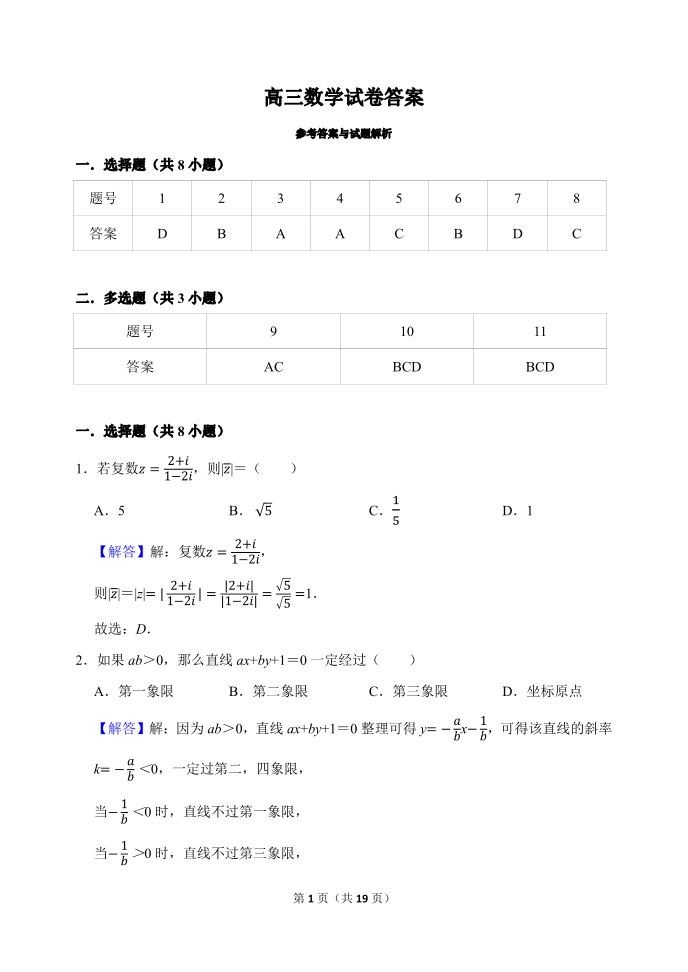 高三数学答案--辽宁省沈阳市东北育才学校2026届高三上学期第三次模拟考试