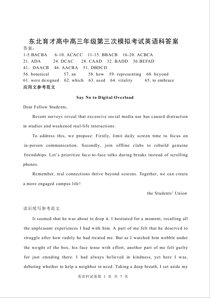 高三英语答案--辽宁省沈阳市东北育才学校2026届高三上学期第三次模拟考试