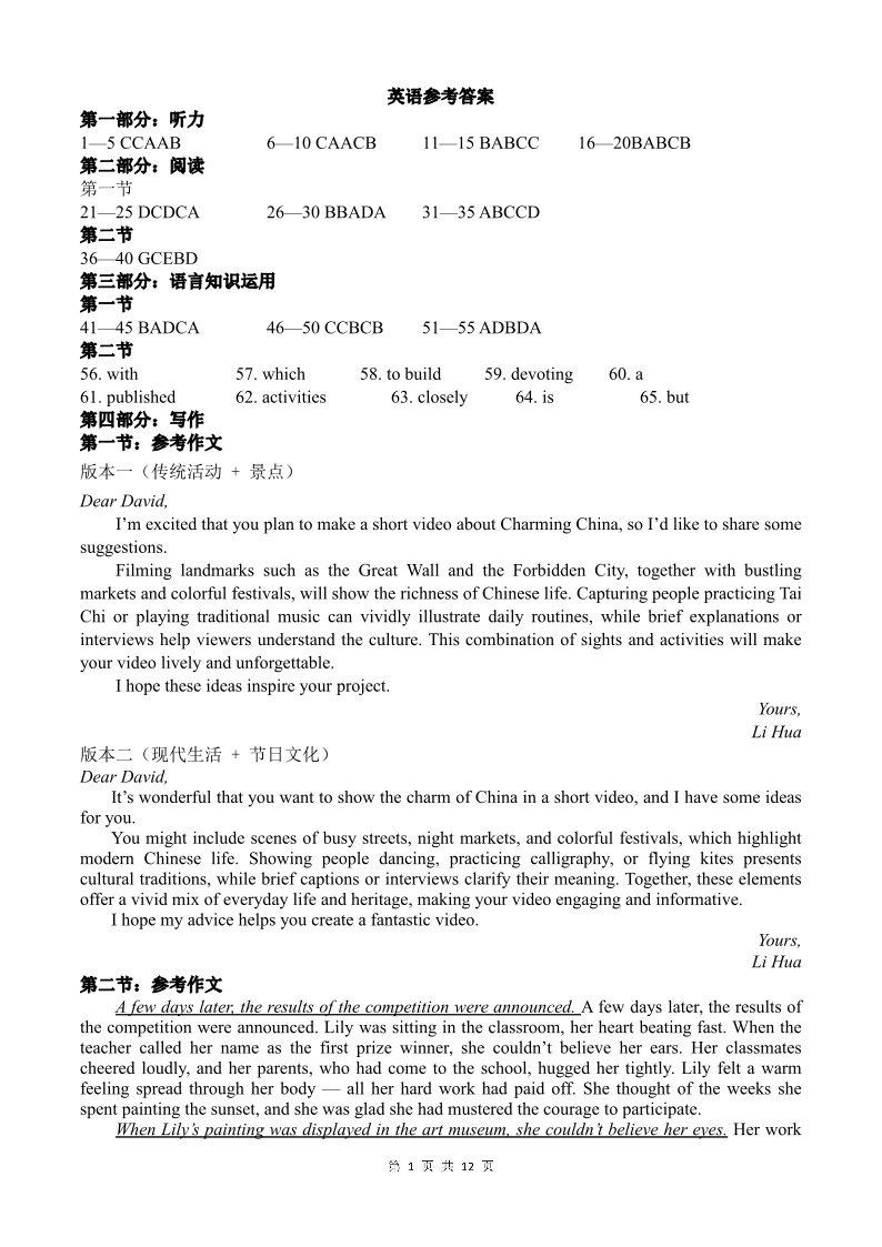 高一英语答案--安徽省江南十校2025-2026学年高一上学期12月联考
